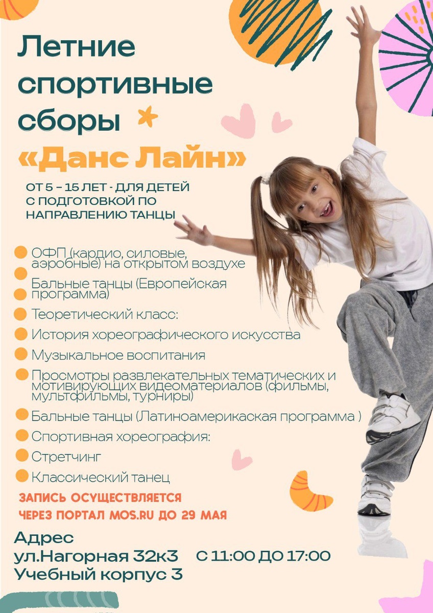 🏆 Летние спортивные сборы "Данс Лайн"! 🎶 Танцевальный кружок "Данс Лайн" приглашает подготовленных ребят на летние спортивные сборы! 🙃 ❓Что вас ждет: 💪 Интенсивные тренировки 📘 Увлекательная история хореографии 🎬 Просмотры и обсуждения тематических фильмов 🤸♀️ Спортивная хореография и стрейчинг 😊И многое другое! 📌 Запись на портале mos.ru до 29 мая 2025 г. ❗ 🔜 Код: 2281154 ➡️ Ссылка: https://www.mos.ru/pgu2/activity/card/533284 #ДОНМ #ШколыКолледжиМосквы #школа626 #школасац #котловка #мрсд23 #допы626 #ДополнительноеОбразование #допобразование