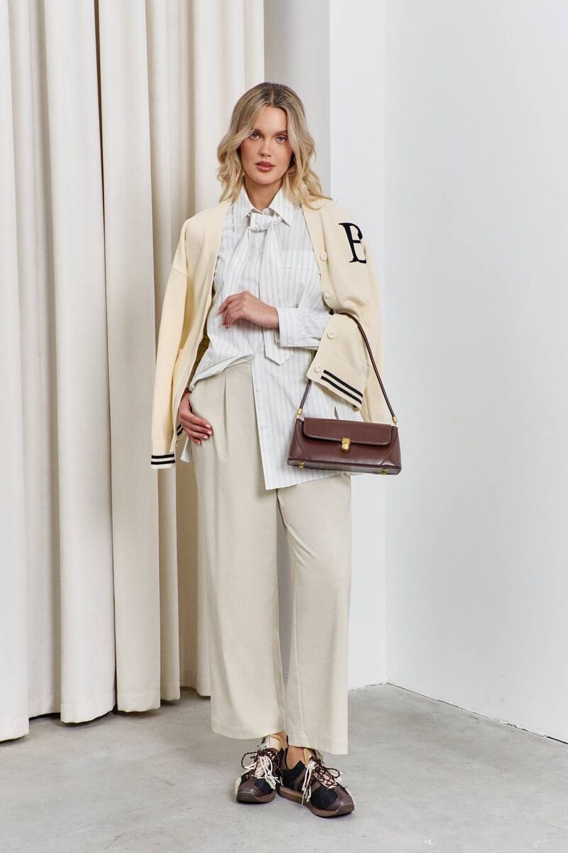 Подборка готовых образов на прохладный май 🍃 1 образ: трикотажный джемпер , брюки из костюмного полотна и хлопковая рубашка 2 образ: трикотажный джемпер и брюки из костюмного полотна 3 образ: платье в стиле smart casual 4 образ: джемпер в молочном цвете и юбка в цвете хаки 5 образ: классический жакет и брюки с дизайном «ёлочка»
