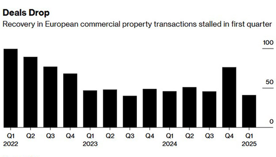 ΠΠΎΡΠ»Π΅ ΠΊΡΠ°ΡΠΊΠΎΠ²ΡΠ΅ΠΌΠ΅Π½Π½ΠΎΠ³ΠΎ ΡΠΎΡΡΠ° Π² 2024 Π³ΠΎΠ΄Ρ ΡΡΠ½ΠΎΠΊ ΠΊΠΎΠΌΠΌΠ΅ΡΡΠ΅ΡΠΊΠΎΠΉ Π½Π΅Π΄Π²ΠΈΠΆΠΈΠΌΠΎΡΡΠΈ ΠΠ²ΡΠΎΠΏΡ ΡΠ½ΠΎΠ²Π° ΡΡΡΠ» Π½Π° ΠΏΠ°ΡΠ·Ρ. Π ΠΏΠ΅ΡΠ²ΠΎΠΌ ΠΊΠ²Π°ΡΡΠ°Π»Π΅ 2025 Π³ΠΎΠ΄Π° ΠΎΠ±ΡΠ΅ΠΌ ΡΠ΄Π΅Π»ΠΎΠΊ ΡΠΎΠΊΡΠ°ΡΠΈΠ»ΡΡ Π½Π° 11%, Π΄ΠΎΡΡΠΈΠ³Π½ΡΠ² β¬41 ΠΌΠ»ΡΠ΄ β ΡΡΠΎ ΠΌΠΈΠ½ΠΈΠΌΡΠΌ Ρ ΠΊΠΎΠ½ΡΠ° 2023 Π³ΠΎΠ΄Π° ΠΈ ΠΎΠ΄ΠΈΠ½ ΠΈΠ· ΡΠ°ΠΌΡΡ