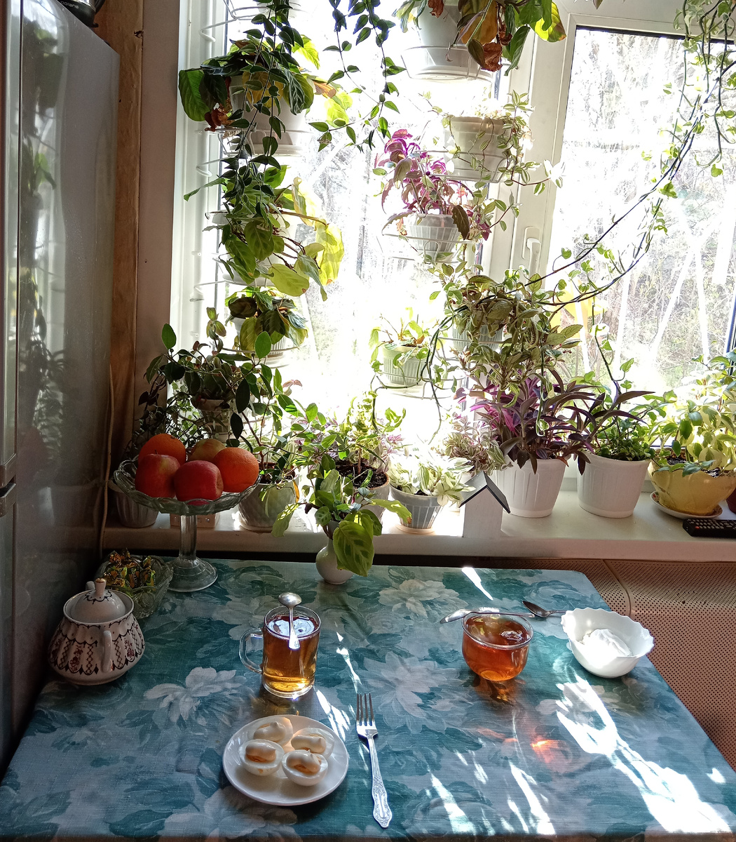 10:58. Позвонил супруг. Давление в норме. Позавтракал. Выносит рассаду помидоров погулять у дома. Подсказала, чтобы на солнцепёк не ставил. Солнце сейчас жгучее. Ожоги могут быть. Поставит в тень. Лишь бы Муська не погрызла.