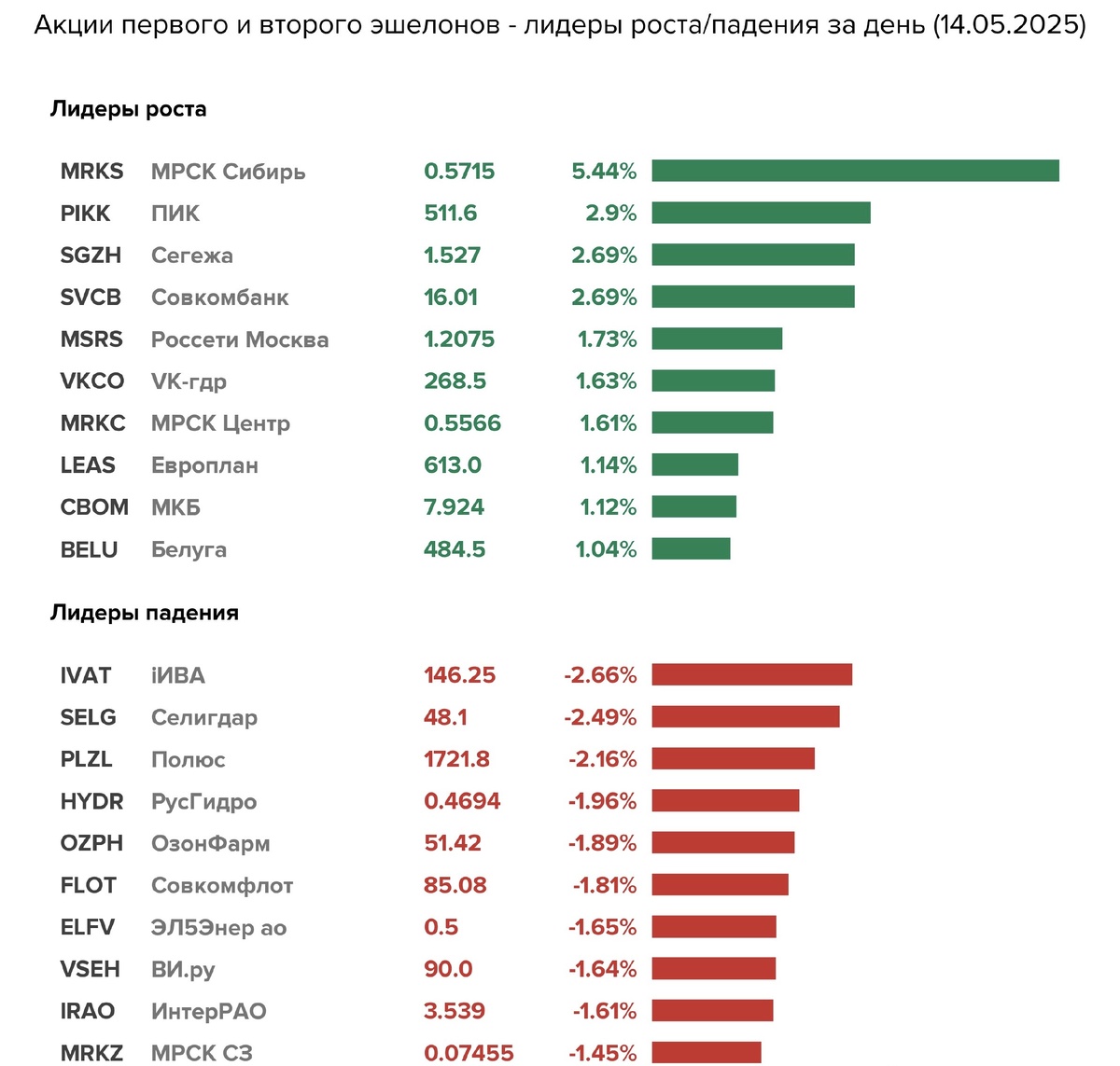Всем привет! По итогам основной сессии 14 мая индекс Мосбиржи потерял около 0,35%. Обратите внимание как выглядит график последних дней - рынок замер в ожидании завтрашних переговоров. Волатильность минимальная, так как угадать исход сейчас трудно. Валюта продолжает торговаться на минимумах года. Нефть торгуется в районее 66 дол/барр. Brent. Минфин сегодня разместил на аукционе ОФЗ-ПД 26248 в объеме ₽78,53 млрд при спросе ₽182,37 млрд, средневзвешенная доходность – 16,32% годовых. Совет директоров Русагро в отсутствии основного акционера решил рекомендовать не выплачивать дивиденды за 2024 г. Решение ожидаемое и логично, так как не понятно чем закончится история с претензиями к компании. Это хорошо, что еще обеспечительные меры не наложили. 21 мая Совет директоров Газпрома примет решение по дивидендам. Я иллюзии не питаю, но проголосовал за то, что дадут дивиденды, так как по дивидендной политике формально должны заплатить. Если не заплатят - не обижусь. Утром появилась новость, что