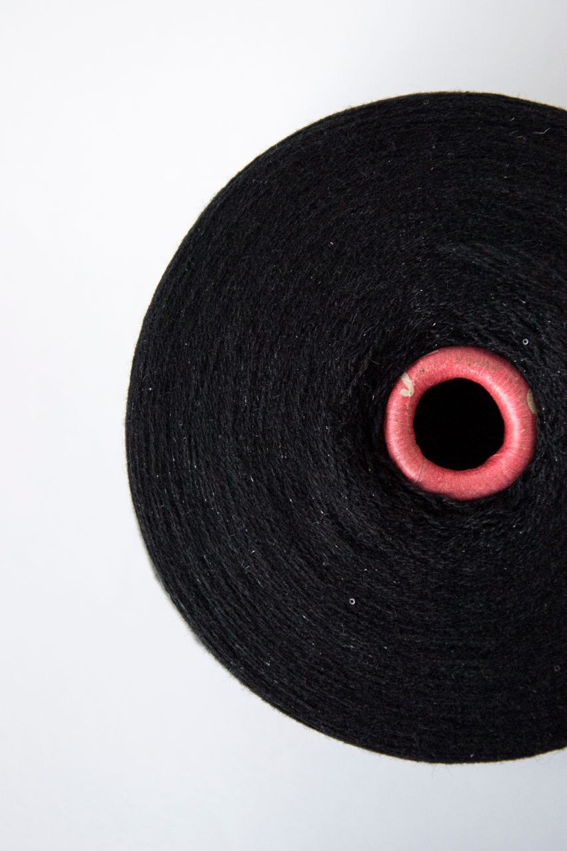 Метраж 1200/100, фактически - кашемир 2/26 + черная нить п/а с черными микропайетками + нить черного люрекса.