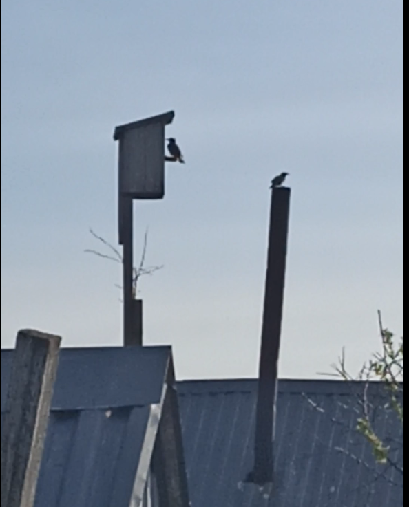 Скворцы прилетели в апреле (это я узнала позже). Каждый год в это время прилетают они и радуют нас своим присутствием. Вечером вышла послушать скворцов (я приехала к маме в гости на майские выходные) понаблюдать за ними — но было тихо. "Неужели они не прилетели в этом году?" - думала я. Зато на рассвете, когда ещё поля были окутаны утренним туманом, ещё блестела на траве роса, я вышла во дворик и услышала, что они были здесь, рядом. Они проснулись и выводили свои весёлые мотивы, что-то вроде чириканья с пересвистом, отчего радовалась душа. Я застала их за делом: родители-скворцы трудились не покладая крыльев: ловили мошек, носили червяков, суетились. Один даже попытался заглянуть к соседям — но был решительно выставлен. Они поселились в уютных скворечниках, которые построил для них мой отец ещё при жизни, где им спокойно и безопасно. Два домика — две семьи. Чёткие границы: никто, кроме хозяев, не смеет заглядывать в чужие владения. Интересно, скворцы тоже ценят личное пространст