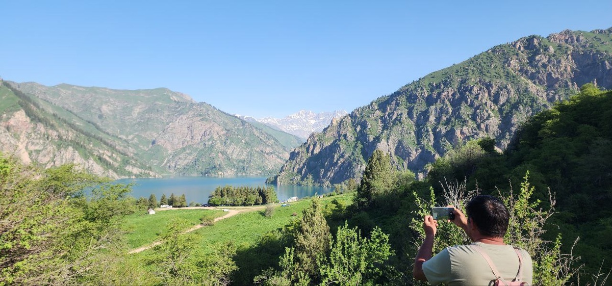 В 06:30 у нас прозвенел будильник: план был — рано встать и бодро стартануть по запланированному маршруту, пока не жарко. Реальность: выключили будильник и уснули дальше. Вышли в итоге в 8:30 — ну, тоже неплохо! ✌️ План на день: дойти до пещеры у озера Ийри-Кель через озеро Туюк-Кель. А потом — до точки с 4G и назад. Уже не коротко, но терпимо. Оставили на парковке нашу одиноко стоящую машинку — и в путь! А потом… началось. Где-то между озерами заметили на карте перевал Которма. Сережа тут же: — О, пойдём туда! Я: — Это ж 500 метров по высоте! Половина подъема на Агунг! Шесть с лишним километров только отсюда, где мы уже находимся! Он: — Ну просто попробуем. Я: — Ну... давай. Так и начался наш поход, который мы вообще не планировали. На пещеру (точнее, две глыбы с местом под костёр) мы всё же заглянули. Туристы из палатки предупредили: "Пещера — не вау, а вот за ней есть место для отдыха и даже купалки." И мы пошли дальше. Перевал всё не приближался, всё казалось "не нашим уровнем