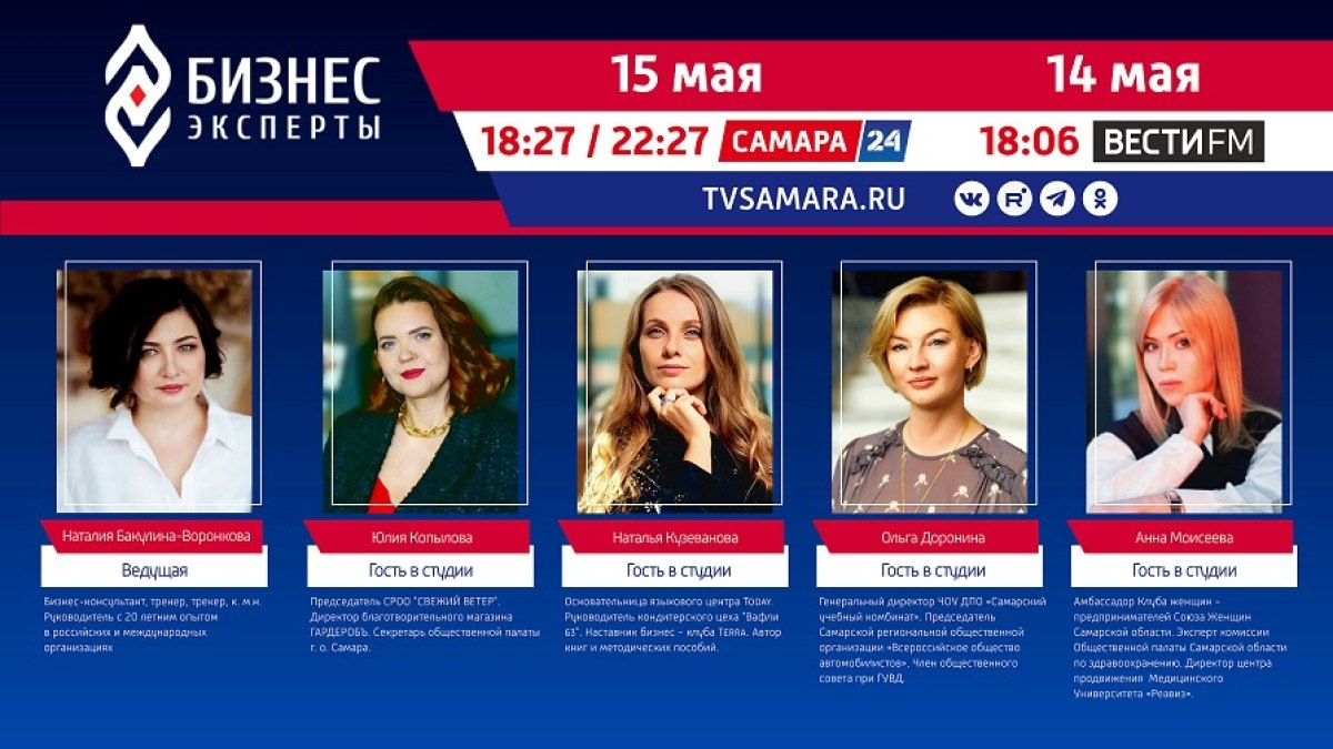 1️⃣2️⃣3️⃣4️⃣ «Бизнес-эксперты»: социальная ответственность бизнеса Как живет и работает социально-ответственный бизнес, чем он отличается от социального предпринимательства, какие благотворительные проекты проводятся в Самарской области? На эти и другие вопросы в студии ГТРК «Самара» ответят участники нового выпуска программы «Бизнес-эксперты». Гости программы: • ЮЛИЯ КОПЫЛОВА, председатель СРОО «СВЕЖИЙ ВЕТЕР», директор благотворительного магазина ГАРДЕРОБЪ, секретарь общественной палаты г. о. Самара; • НАТАЛЬЯ КУЗЕВАНОВА, основательница языкового центра Today, руководитель кондитерского цеха «Вафли 63», наставник бизнес-клуба Terra, автор книг и методических пособий; • ОЛЬГА ДОРОНИНА, генеральный директор ЧОУ ДПО «Самарский учебный комбинат», председатель Самарской региональной общественной организации «Всероссийское общество автомобилистов», член общественного совета при ГУВД; • Анна Моисеева, амбассадор Клуба женщин-предпринимателей Союза Женщин Самарской области, эксперт коми