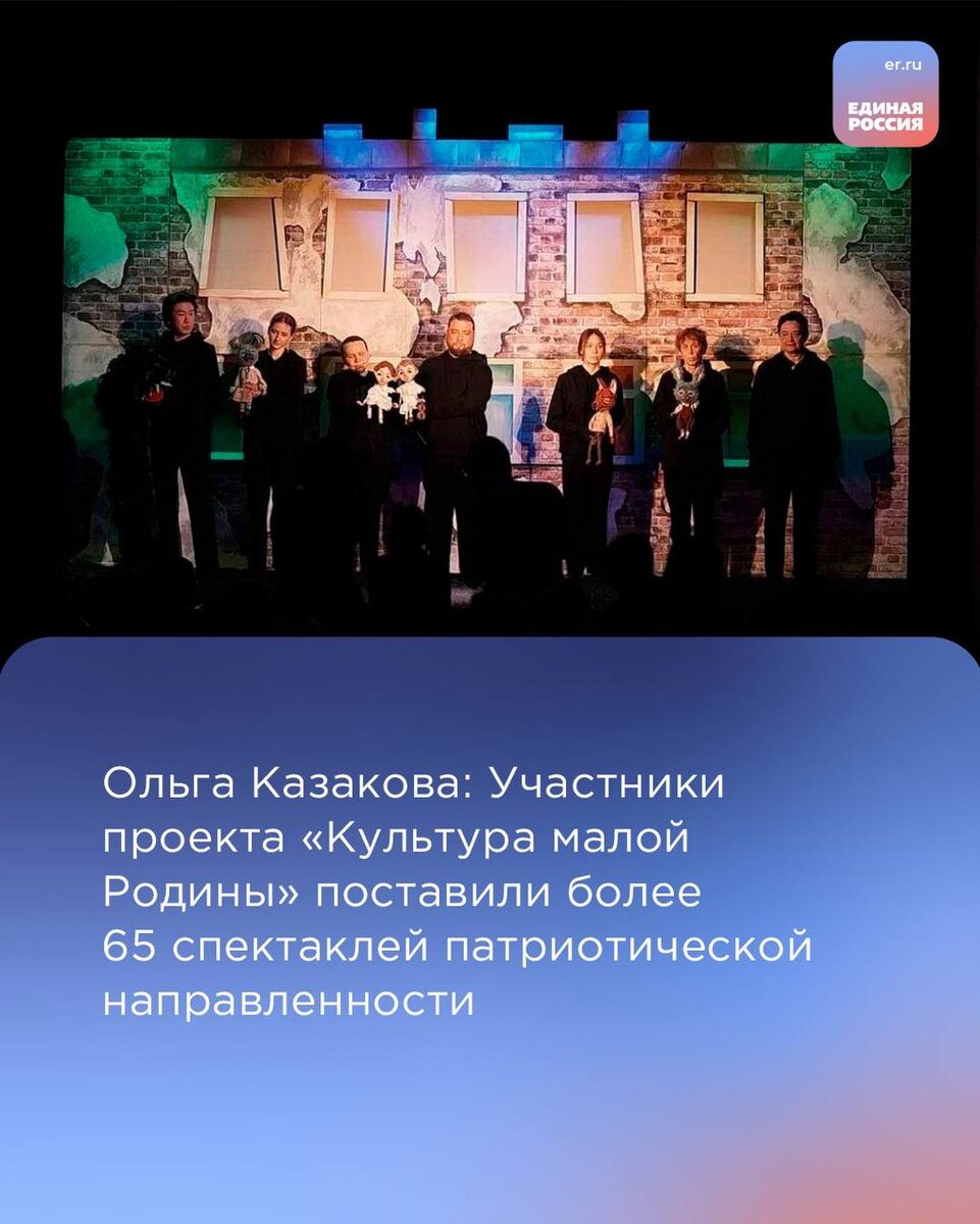 В честь 80-летия со Дня Победы советского народа в Великой Отечественной войне театры, участники проекта «Культура малой Родины», поставили более 65 спектаклей патриотической направленности.