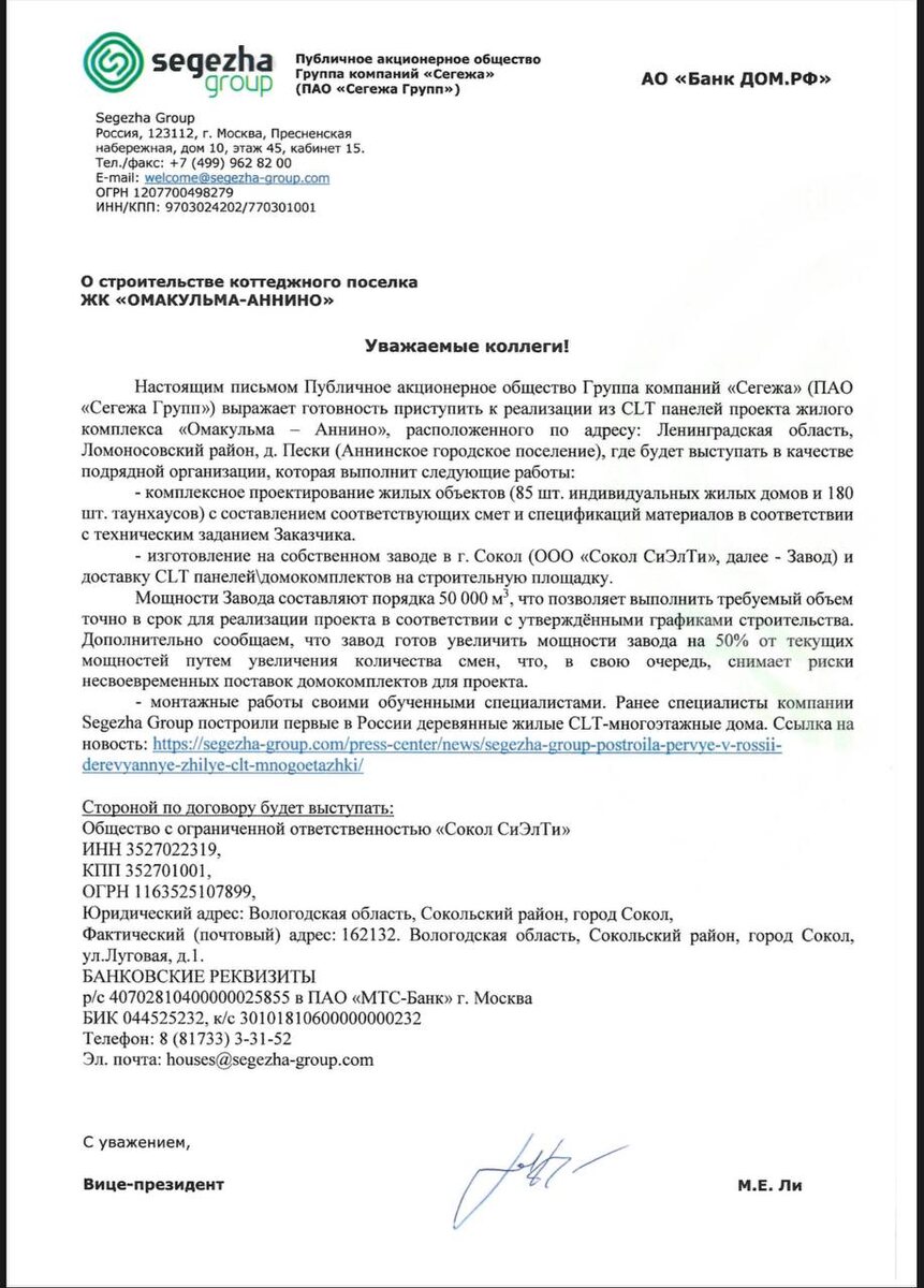 Чтобы вы понимали, мы предлагали партнеров Сегежа групп (это АФК система) но как сейчас я понимаю, эта информация до вышестоящего руководства не дошла.