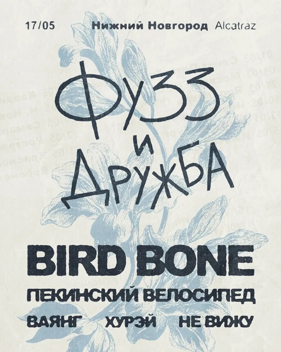 17 мая фестиваль «Фузз и Дружба». Bird Bone, Пекинский велосипед, Ваянг, Хурэй и не вижу на сцене Alcatraz.