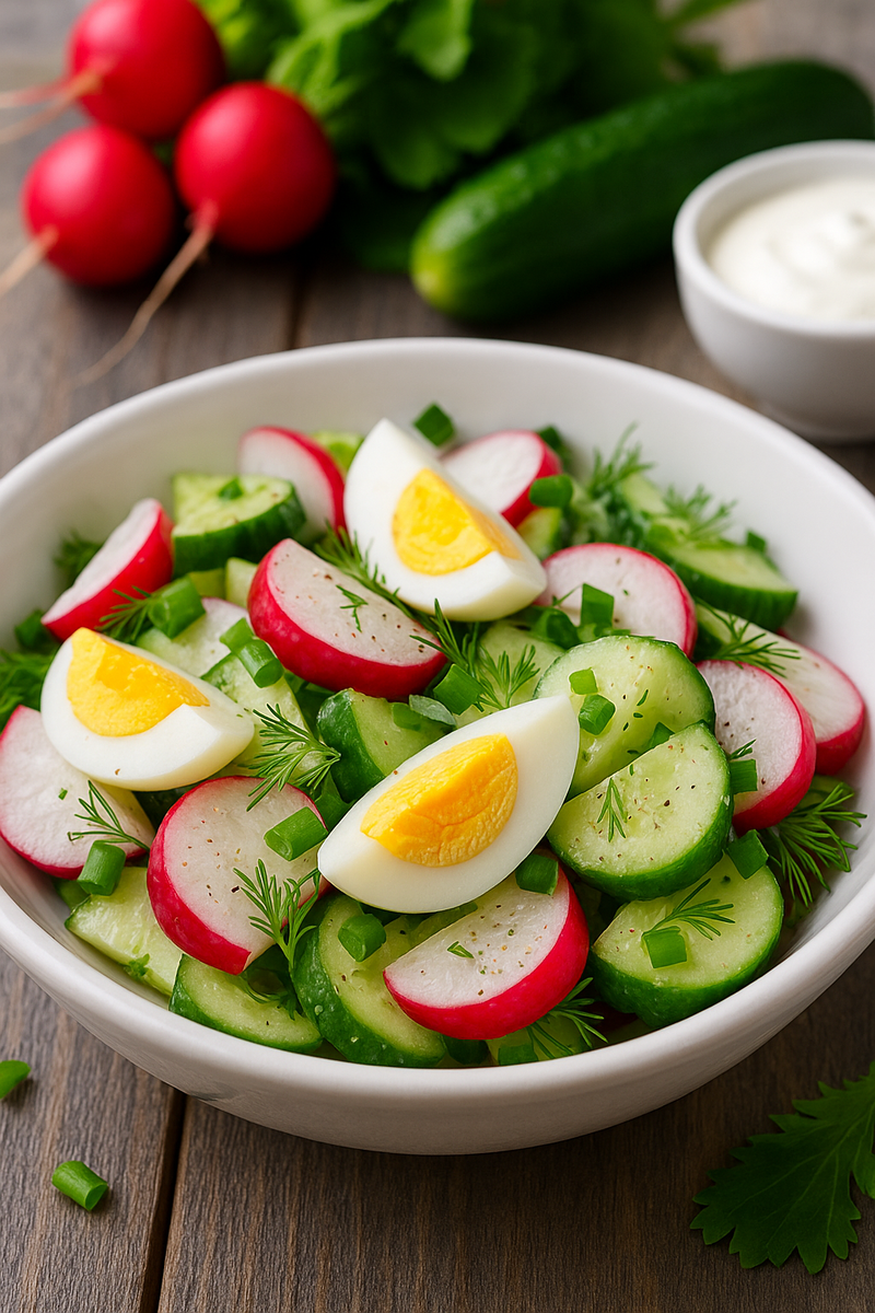 Лёгкий, сочный, витаминный — идеально подойдёт как гарнир к шашлыкам или как самостоятельное блюдо! Ингредиенты: Приготовление: 📌 Совет: Можно добавить немного горчицы или каплю лимонного сока — для пикантности. 🕒 Готово за 10 минут. Отлично сочетается с блюдами на гриле!