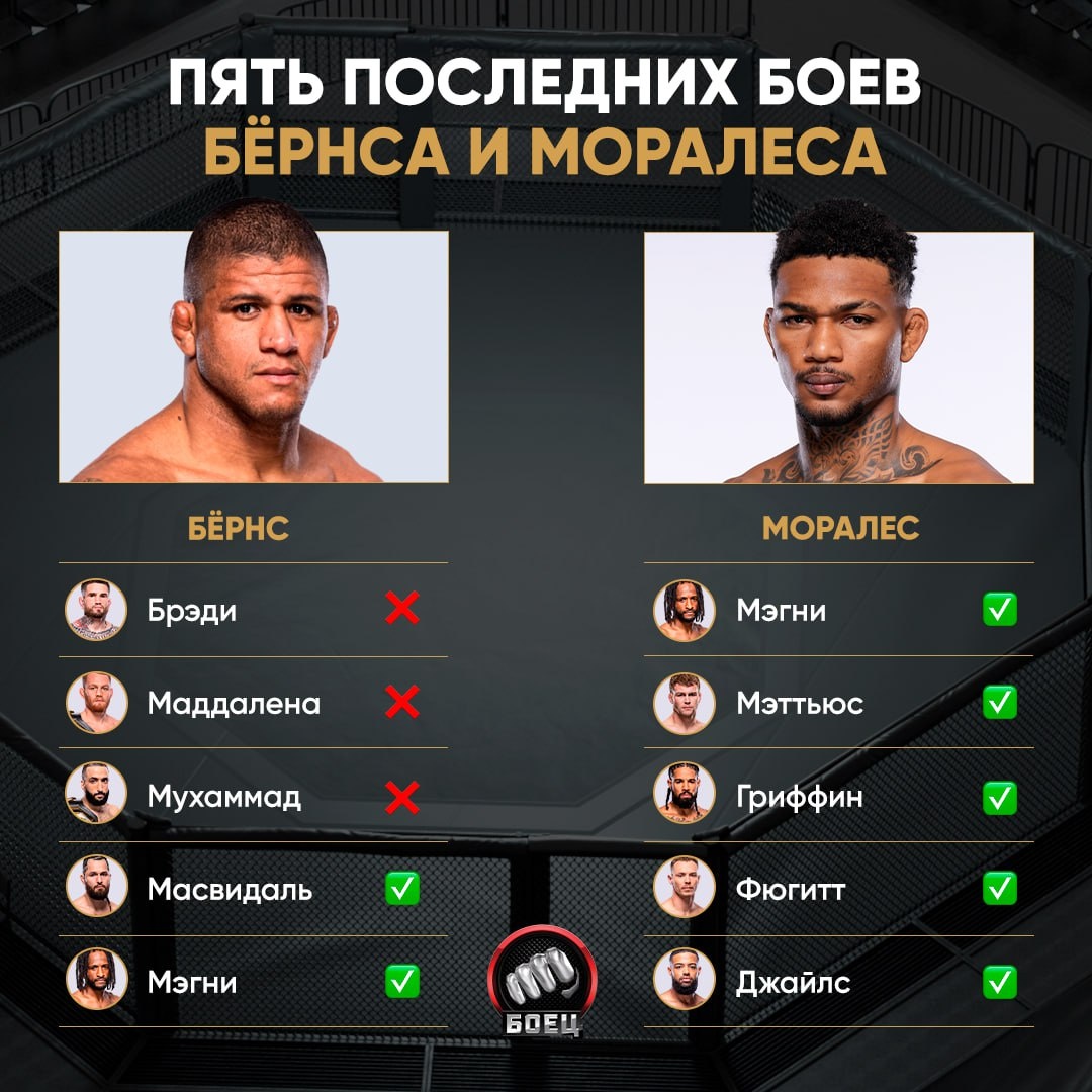 Как прошли последние пять встреч Бёрнса и Моралеса? ⚔️