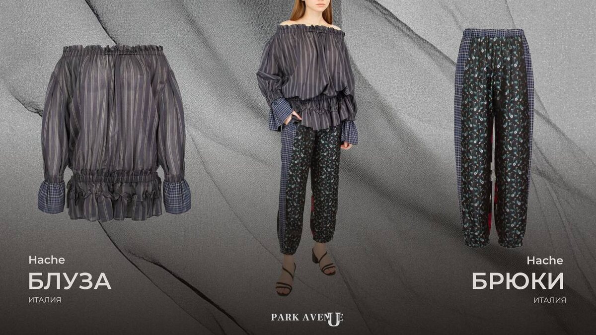 Форма, которая дышит. Стиль, который не требует усилий В коллекции Hache — комплект, где комфорт встречается с композицией. ⏺ Брюки-джоггеры Объединяют клетку и цветочный принт, но вместо хаоса — выстраивают графичный ритм. Свободный крой, эластичный пояс, ощущение лёгкости — и ни намёка на компромисс между стилем и удобством. ⏺ Блуза с открытой линией плеч — современное переосмысление прованского настроения. Полупрозрачная ткань, оборки, манжеты в клетку — здесь всё не про драму, а про воздух. Вместе — это не «лук». Это альтернатива коктейльному платью, если вам ближе движение, чем поза. И мягкая сила, чем намеренная элегантность.