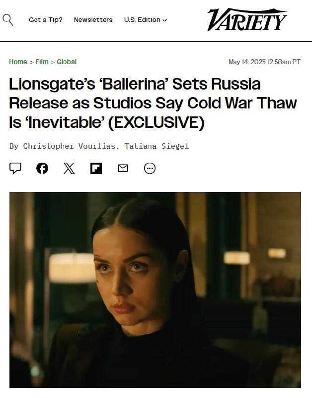Голливудская студия Lionsgate планирует выпустить спин-офф «Джона Уика» под названием «Балерина» в России с 5 июня через российского дистрибьютора Atmosfera Kino