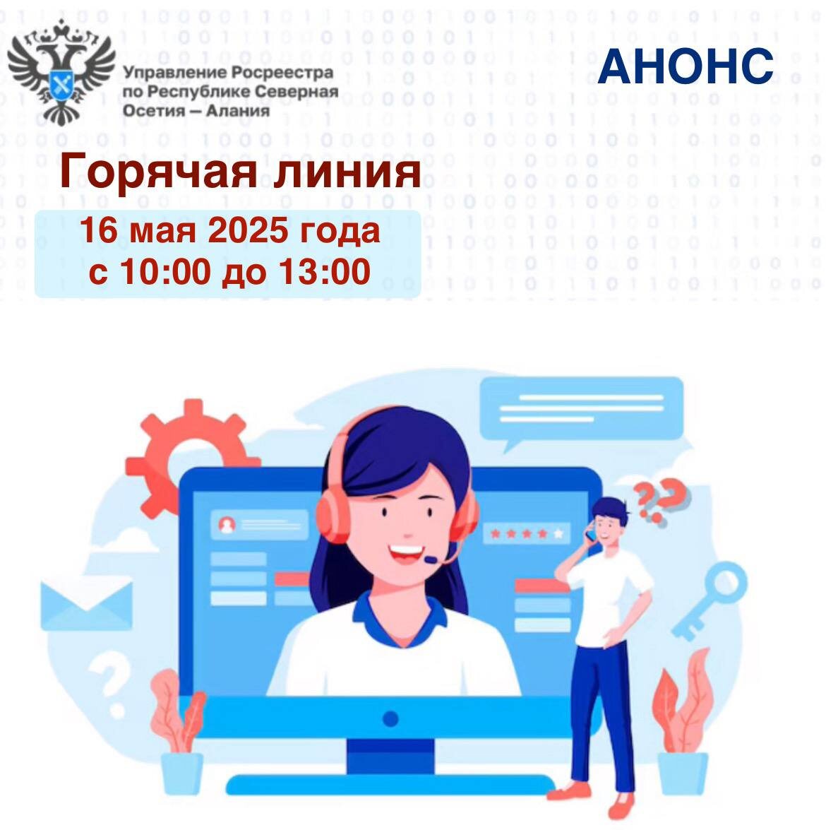 Друзья! ‼️16 мая 2025 года с 10.00 до 13.00 в Управлении Росреестра по Северной Осетии проводится «горячая линия» по вопросам проведения комплексных кадастровых работ. ☎️По телефону (8672) 52-67-93 на ваши вопросы ответит заместитель начальника отдела государственной регистрации недвижимости, ведения ЕГРН, повышения качества данных ЕГРН Управления Марина Беликова #Росреестр #РосреестрСевернаяОсетия #РосреестрСКФО #ГорячаяЛиния #ТамГдеЛюди