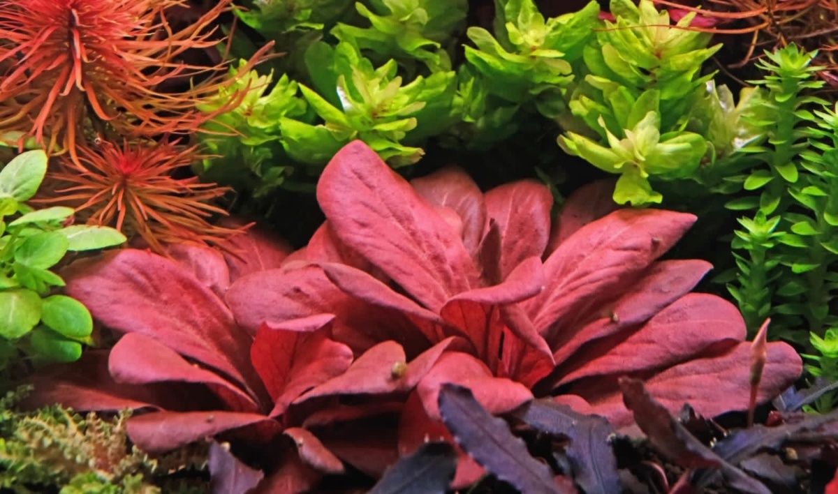 ## Самолус парвифлорус красный - яркое украшение аквариума ### Описание растения **Самолус парвифлорус** - компактное аквариумное растение с пышной кроной красных листьев. Отличается небольшими размерами и декоративным внешним видом. **Основные характеристики**: * Диаметр листьев: около 5 см * Высота в аквариуме: 15 см * Высота в природе: до 40 см * Цвет листьев: красный * Цветение: над водой образует мелкие белые цветки ### Особенности строения **Строение растения**: * Листья собраны в розетку у основания * Стебли короткие (около 1,5 см) * После цветения образует стручки, которые темнеют до коричневого цвета * На цветоносах могут формироваться дополнительные листовые побеги ### Условия содержания **Сложность**: средняя **Скорость роста**: медленная **Параметры воды**: * Температура: 22-28°С * Освещение: 0,4-0,7 Вт/л (15-35 Лм/л) * CO2: не обязательно * Подходит для начинающих аквариумистов ### Размножение **Способы размножения**: * Вегетативное (через листовые побеги) * Посев с