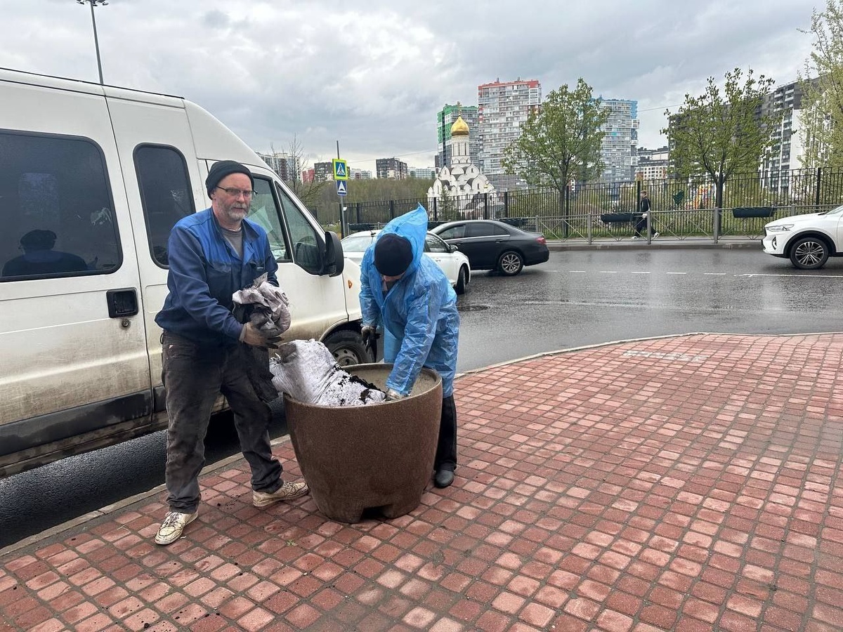 На Ленинградской вазоны землей засыпают