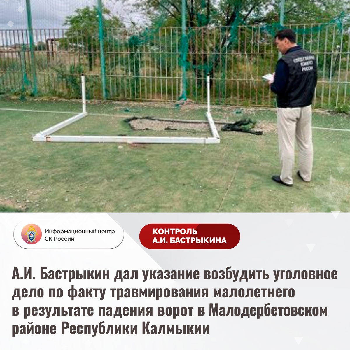 В СМИ сообщается, что 12 мая текущего года в селе Малые Дербеты Республики Калмыкии на спортивной площадке произошло падение незакрепленных футбольных ворот на семилетнего мальчика. Пострадавший госпитализирован в тяжелом состоянии.