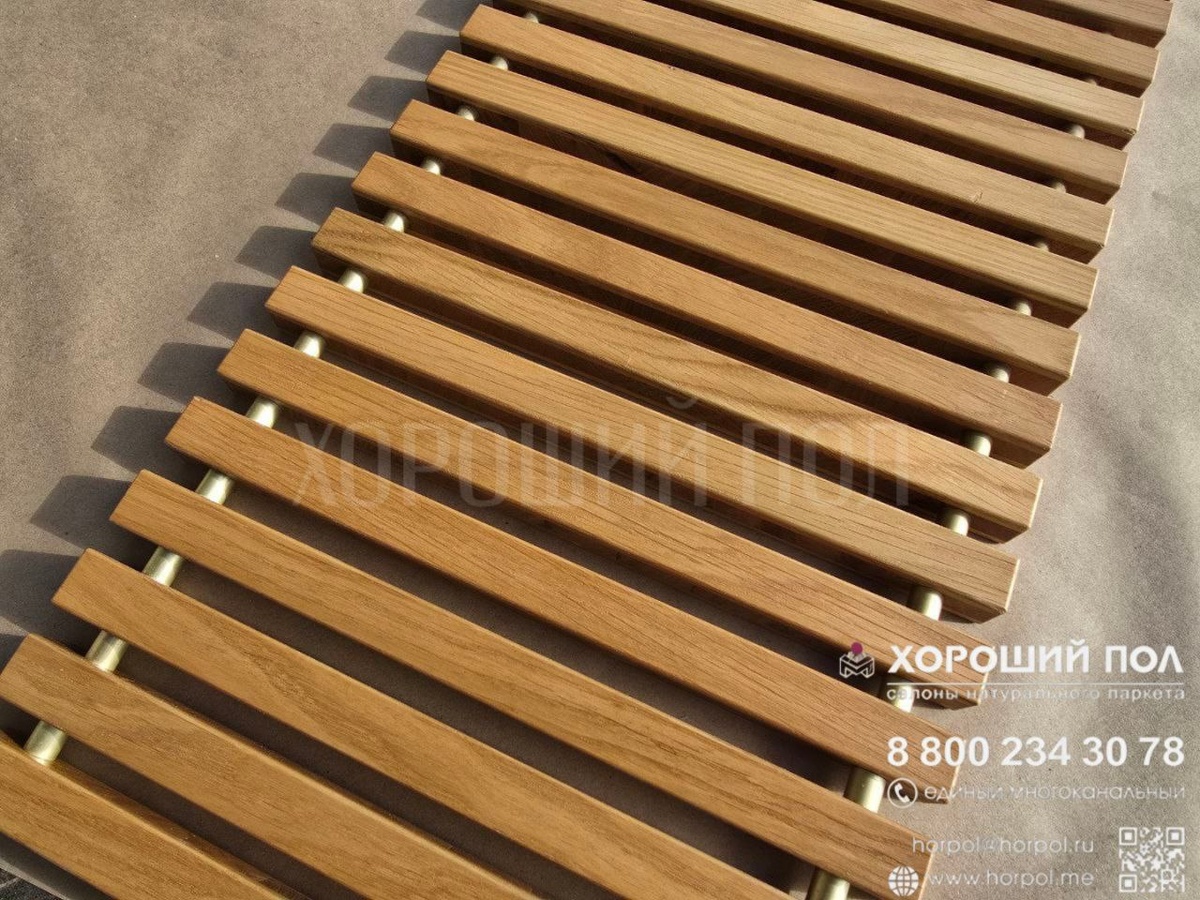 Решетка из натуральной древесины в индивидуальном цвете, сочетающимся с паркетом станет современным и легким элементом интерьера.
