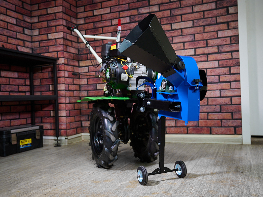 В майские праздники измельчитель мне пришёл. Прикрепить его к мотоблоку несложно: все крепления согласно инструкции, ножки просто регулируем по высоте.