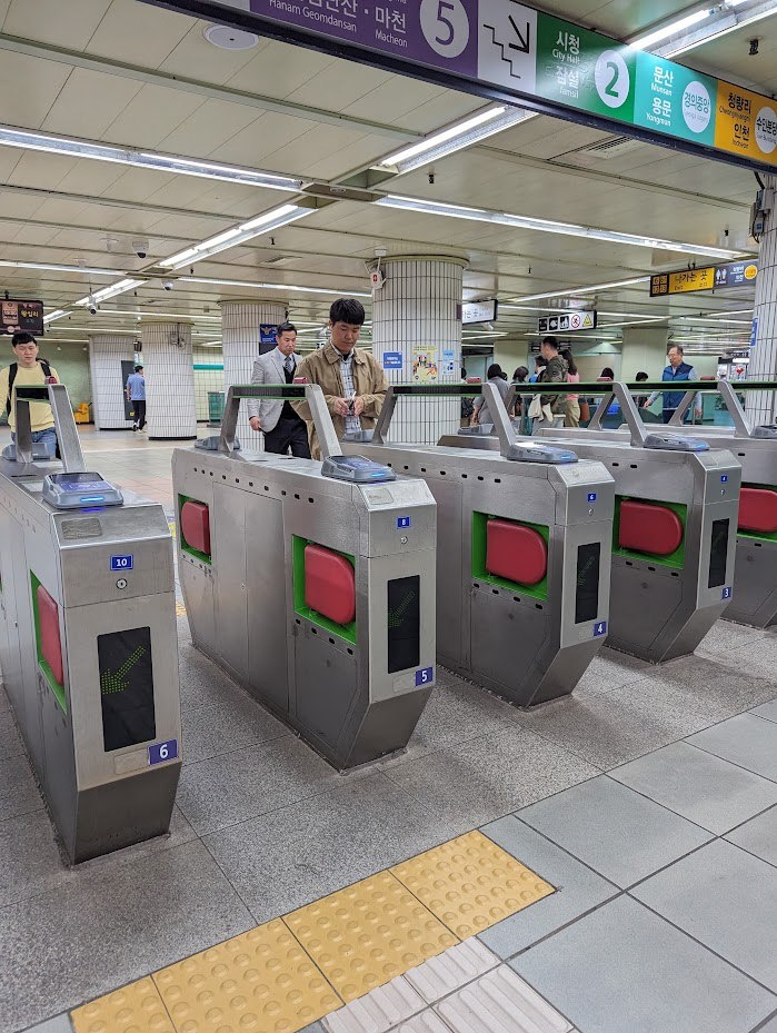 Но и тут есть нюансы. В Сеуле мы жили у станции с 14 выходами. Лифты были только на 2–3. И эскалаторы — там же. А на нашем, ближайшем к квартире, был только (!) лестничный выход. Даже пандусов не предусмотрено.