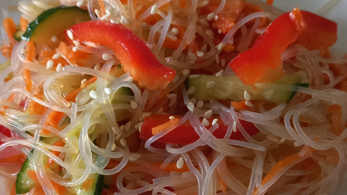 Легкий, свежий, хрустящий — салат с фунчозой и овощами