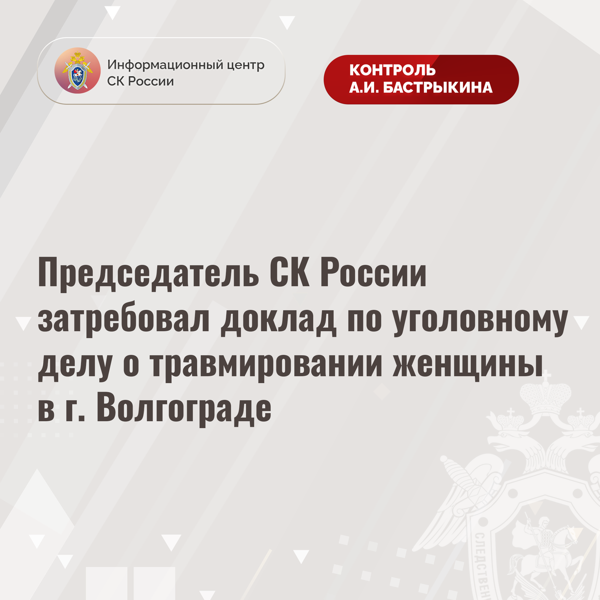 #СледственныйКомитет #СКРоссии #СКР #ИЦСКР #ИнформационныйЦентр #АлександрБастрыкин #ПредседательСКР #КонтрольПредседателяСКР #КомментарийКонтроль #ВолгоградскаяОбласть