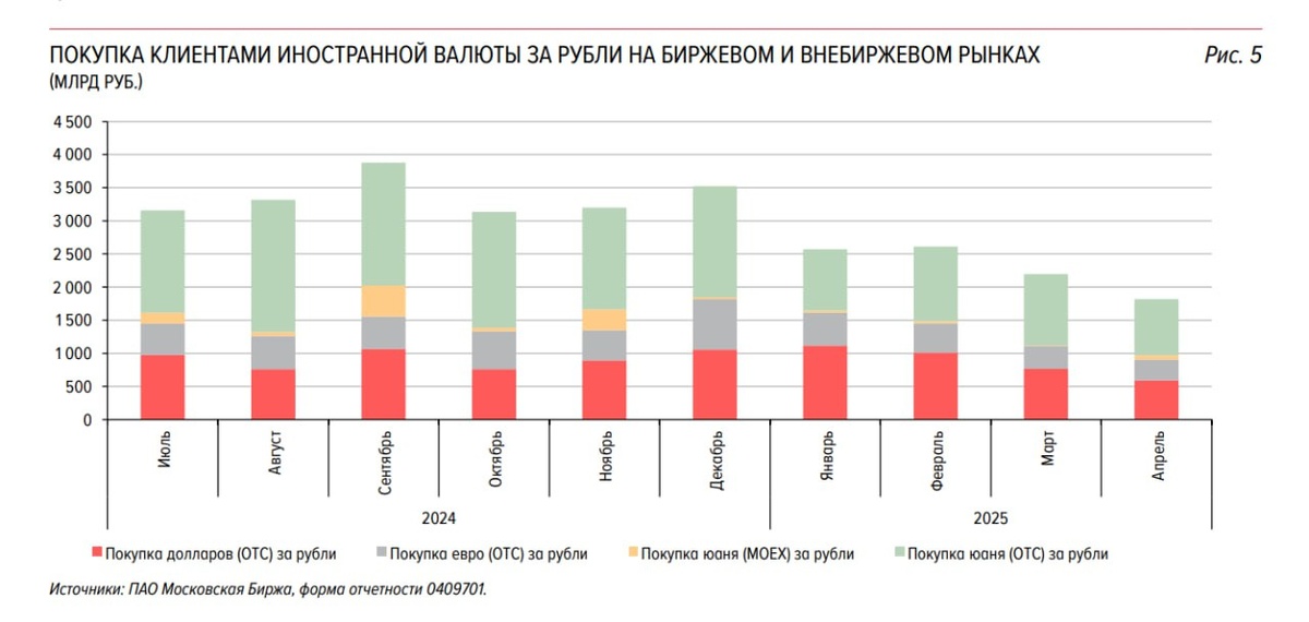 Спрос на валюту на внутреннем рынке в 2025 году постепенно снижается, что оказывает дополнительную поддержку рублю.