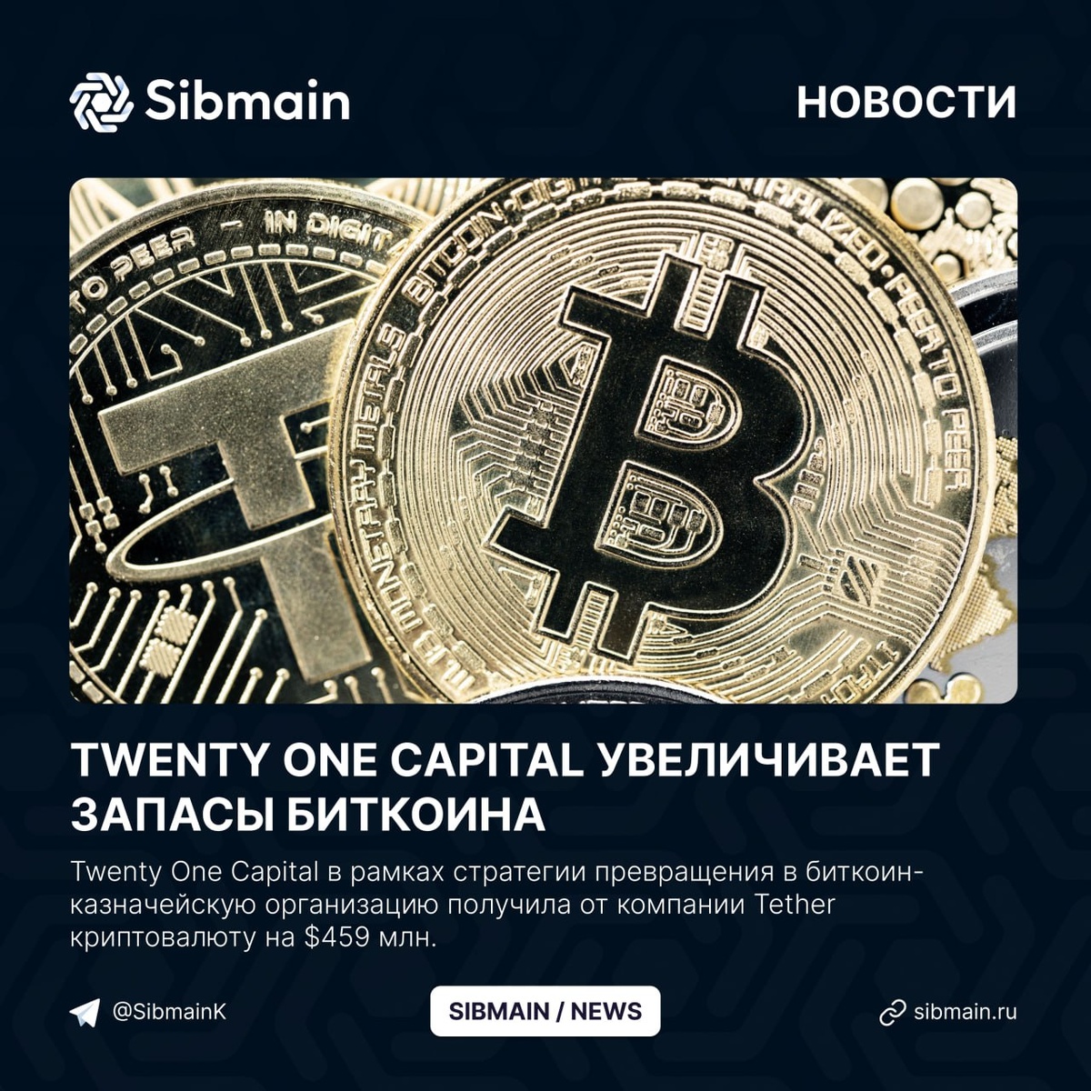 Twenty One Capital в рамках стратегии превращения в биткоин-казначейскую организацию получила от компании Tether криптовалюту на $459 млн.