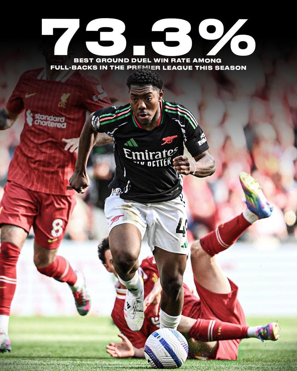Среди крайних защитников у Майлса Льюис-Скелли из "Арсенала" высший показатель по выигранным единоборствам в это сезоне Премьер-Лиги 🔝