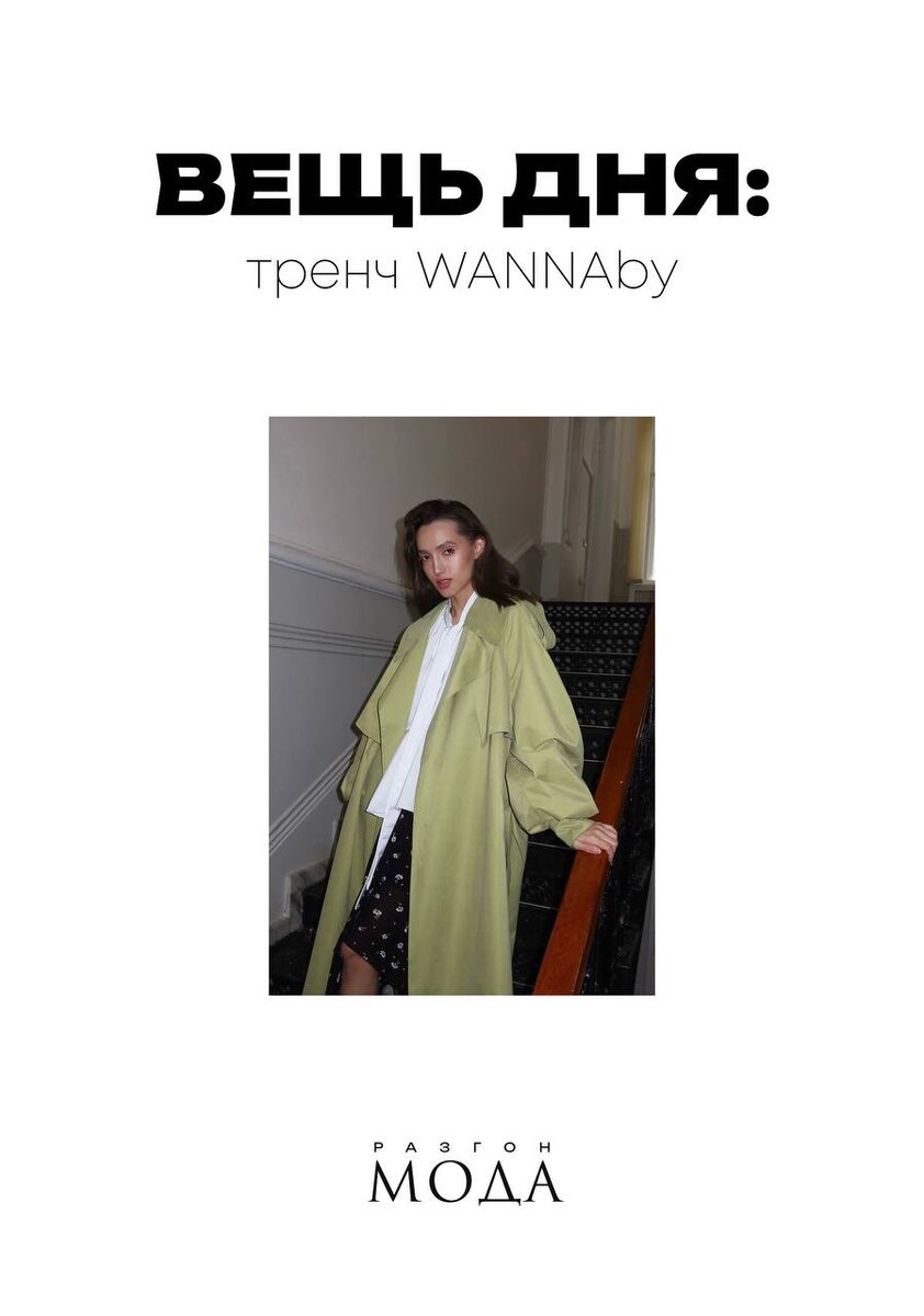 Тренч «Матча» от WANNAby оправдывает свое название: теплый, нежный, двубортный, с театрально объёмными рукавами, лацканами и макси-длиной. И да, он не просто красивый — ткань с водоотталкивающей пропиткой справится с дождём лучше зонта. #РазгонМода_ВещьДня