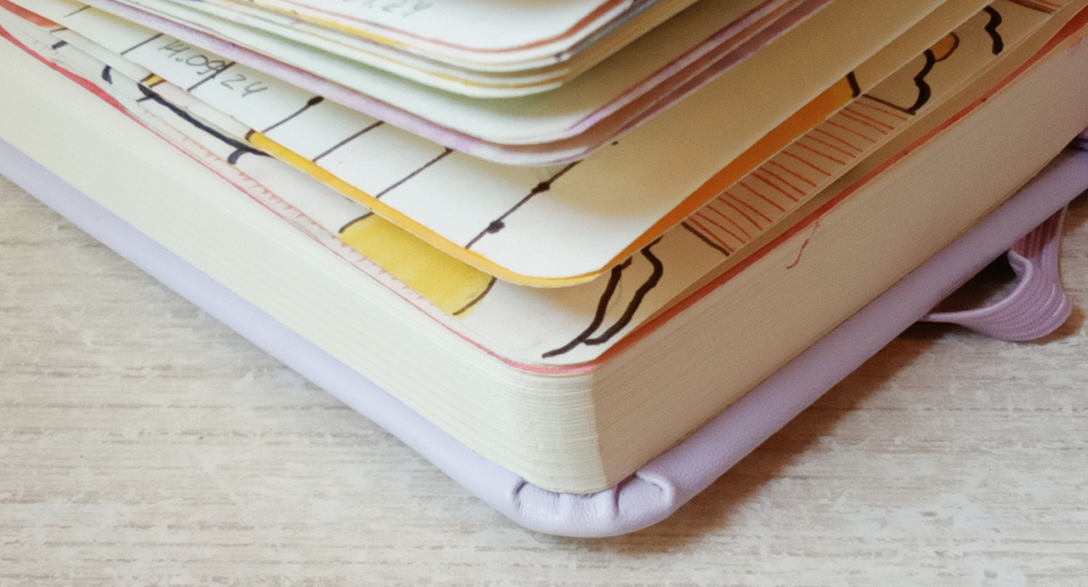 Обзор скетчбука с моими вымышленными яичницообразными ромашками