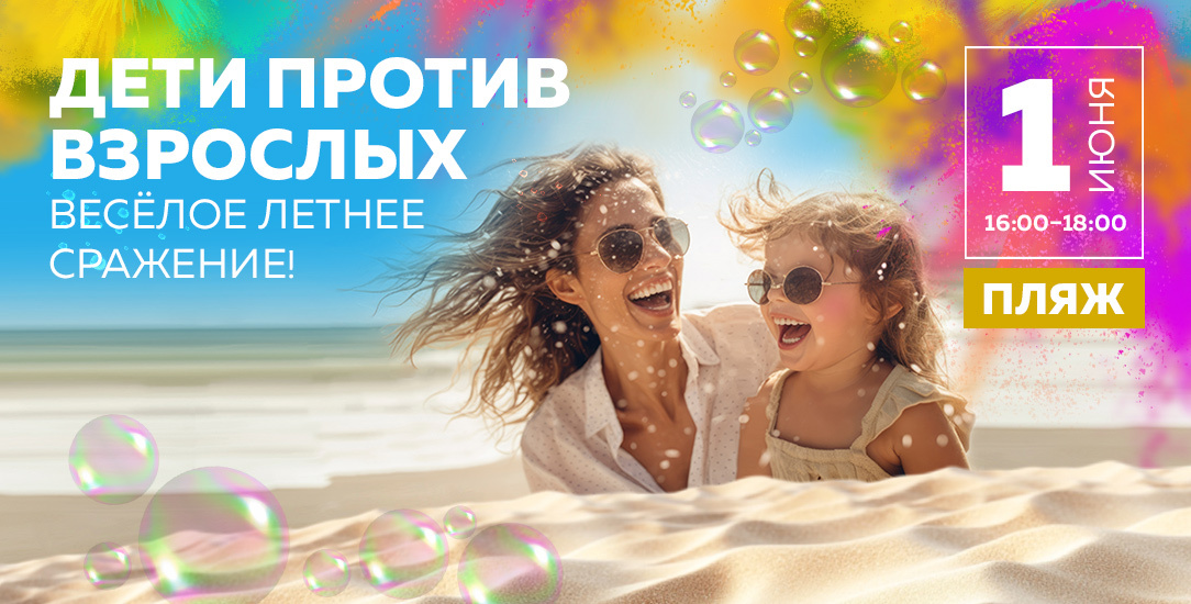 1 июня, в 16:00, на анапском побережье Черного моря начнётся весёлая праздничная программа «Дети против взрослых». Приходите всей семьёй — пусть первый день лета наполнит вас энергией и яркими впечатлениями!