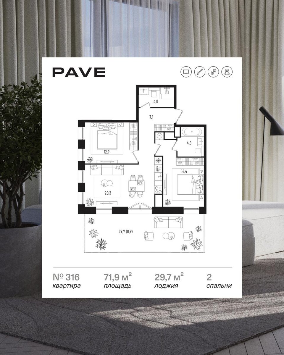 Мы всегда представляем, как будут жить будущие резиденты наших проектов: думаем не только о размерах комнат и качестве отделки, но и о том, как пространство будет подстраиваться под разные сценарии жизни. Недавно мы спрашивали вас, о каких планировках хочется узнать больше. Вариант с двумя спальнями — фаворит. В новом квартале #Pave есть такая квартира №316 — с большой лоджией, двумя отдельными комнатами и возможностями для жизни в том ритме, который вам близок: Для семьи с ребёнком Одна из спален становится детской — она будет изменяться вместе с ребёнком. Сначала — игровая зона, потом — место для учёбы и увлечений. Для творческой пары Вторая комната — для всего, что делает вас собой. Здесь можно организовать домашнюю студию, зону для йоги или просто место, где легко перезагружаться после насыщенного дня. Для фрилансера Для работы и вдохновения можно оборудовать целый кабинет. Утром — место с книгами и ноутбуком, вечером — спортзал с ковриком для йоги. А ещё можно всегда принять б