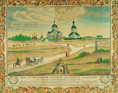 "Рогожское кладбище возникло во время эпидемии чумы в 1771 году, когда все кладбища в черте города были закрыты, в том числе и два старообрядческих – одно за Тверскими воротами, другое у Донского монастыря. Взамен этих последних с разрешения графа Г.Г. Орлова, командированного в Москву для организации борьбы с чумой, старообрядцам, приемлющим священство, было отведено место за Рогожской заставой, направо от Владимирского шоссе, в поле.
