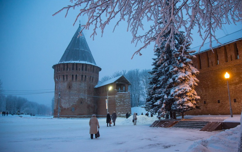 После Днепровских ворот с Одигитриевской церковью, о которых я уже рассказывал ранее, расположена четырёхугольная глухая башня Волкова. К 1692 году возникла реальная угроза обрушения башни, у которой во внешней стене появились большие сквозные трещины от подошвы до зубцов. В 1701-1706 годах первый этаж башни был переоборудован под склад пороха. Состояние кладки стены значительно ухудшилось в 1812 году после обстрела французской артиллерией, штурма города и пожара в нём.