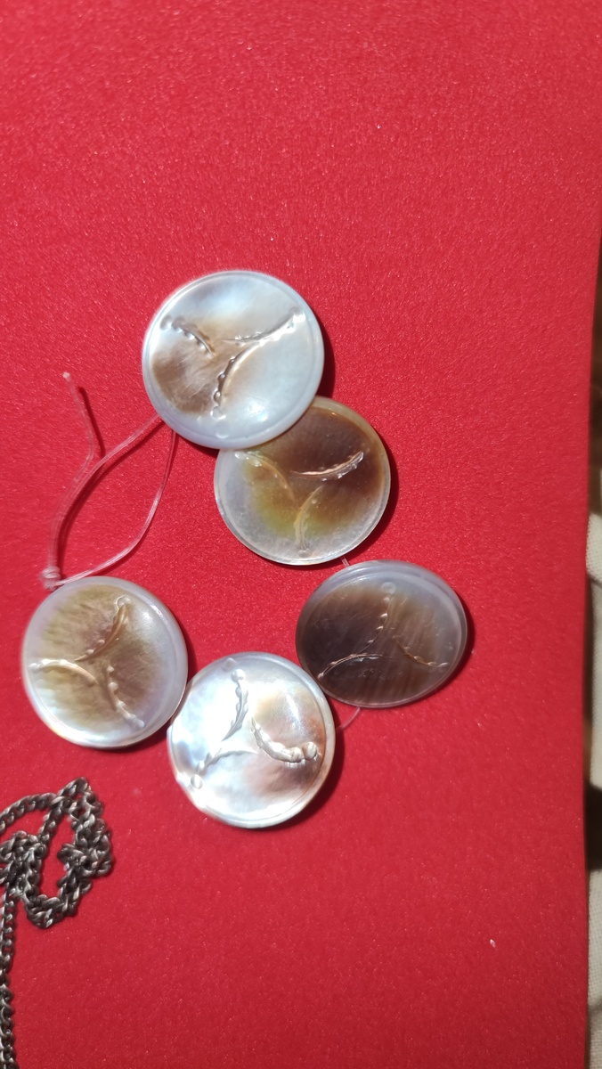 ... то есть, с ушками. Изначально я перламутровые пуговки покупал как альтернативу камнzм: для вставки в ювелирные изделия... И очень мне нравятся не чисто белые разновидности перламутра... Вот, смотрите на такие: Ага, маленькая... Ушко или отдельно (металл, пластик, на клею), либо иpготовлено как одна деталь с отверстием, параллельным плоскости пуговицы... :0)