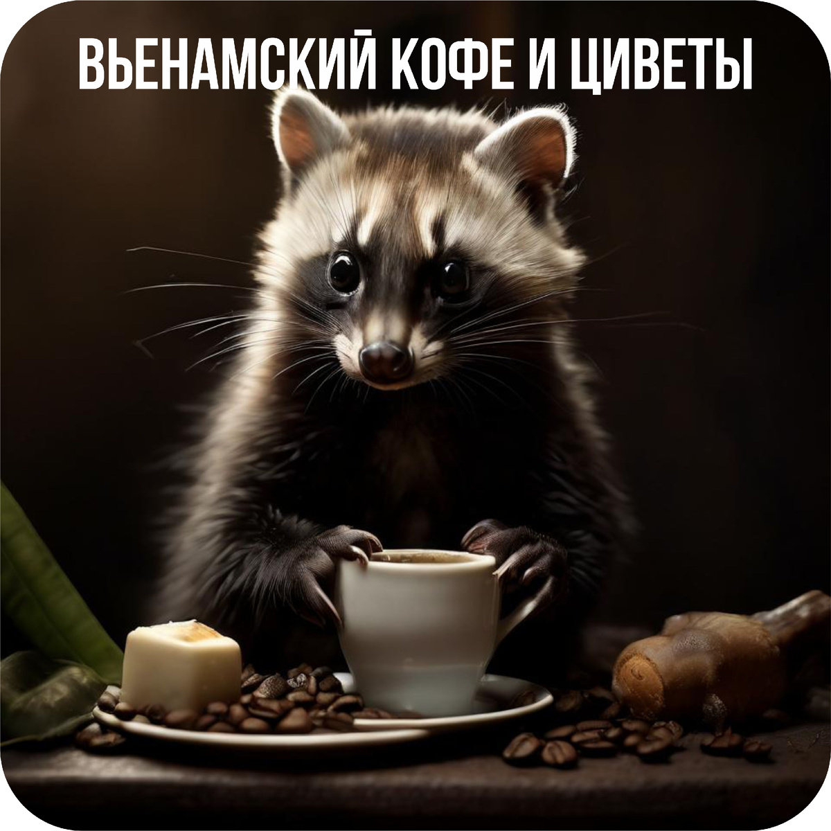 Ну а как же циветы или мусанги? А есть такой зверёк, проживает там же - во Вьетнаме и еще в Индонезии. Вот вьетнамцы и подсмотрели у индонезийцев, как они от бедноты собирают кофейные зерна, которые съел этот зверек, а затем моют их, жарят и пьют. Дело в том, что желудок зверька не может переваривать зёрна, а лишь оболочку -мякоть кофейной ягоды и эти зёрна естественным образом оказываются неподалёку от того места, где их съели. Какая красота! - подумали вьетнамцы, - не надо замачивать ягоды, не надо счищать пульпу (мякоть), а всего лишь собрать сухие какахи пушистых друзей, выковырнуть зернышки, промыть и посушить. Профит!
