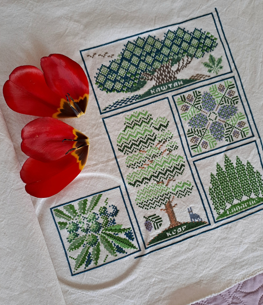 Приветствую, друзья! Что я вам сейчас расскажу! Самой не верится до сих пор😜 Кто читает меня давно, тот помнит мой проект "Русский лес" от Свентаны, который начался в феврале 2023 года. Планы были грандиозные! Подробно я об этом пишу в статьях (выше и ниже приложу ссылки). Бодрый старт и вышито несколько элементов. Однако в мае 2023 процесс встал на паузу... Которая растянулась на 2 года 🙈 самый настоящий долгострой. Элемент из набора схем "Каштан" так и остался недоделанным. Все это время я не забывала о проекте, но душа не лежала к его продолжению. Я никак не могла понять - что не так? Возможно, надо было брать черную основу, как рекомендует дизайнер? Или я плохо выбрала цвета? А с учётом замены цвета основы приходилось не просто подбирать аналоги оттенкам ДМС по ключу, здесь нужно было подбирать оттенки самостоятельно, как делают это дизайнеры. А может быть мне просто не понравилось, как это смотрится в отшиве 🤔 ведь на момент моего старта отшивов я не видела вообще, только превь