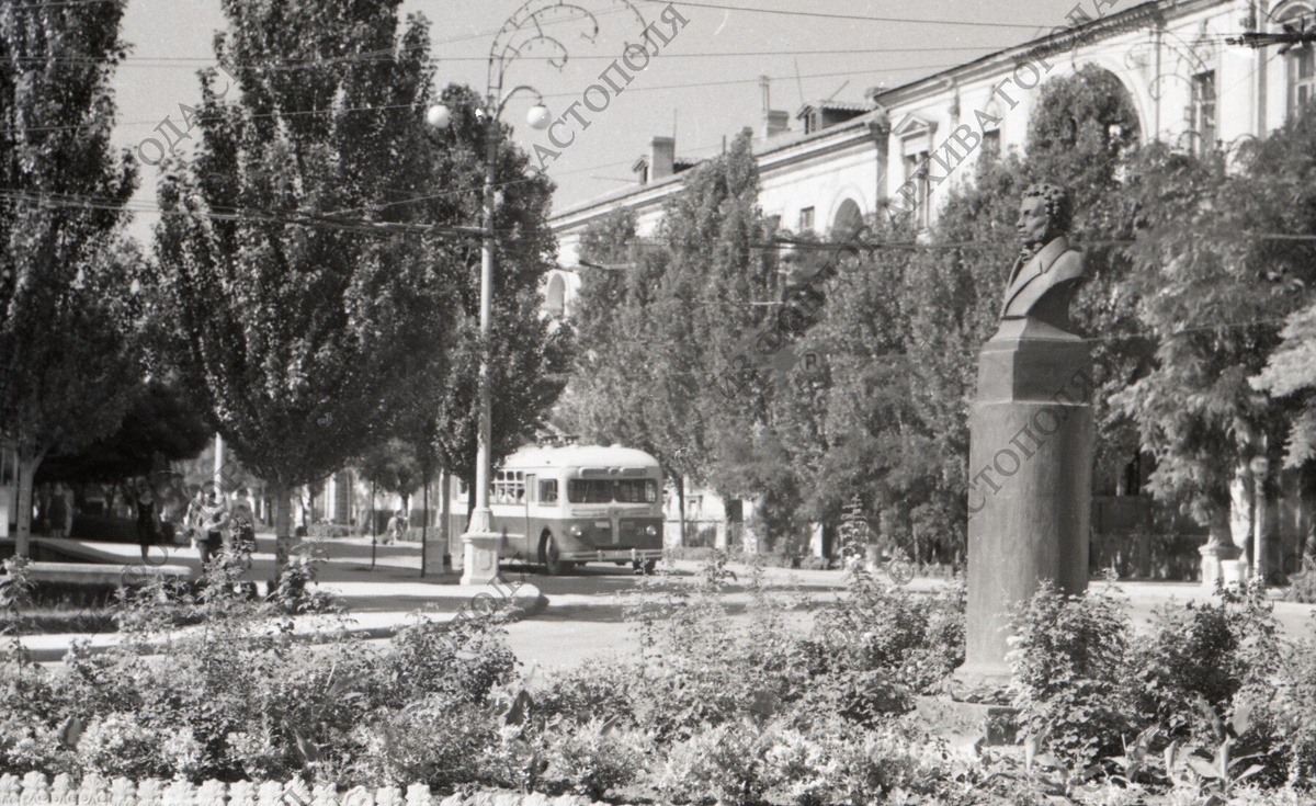🏘️Снимок площади Пушкина (с 1983 года — площадь Суворова). На переднем плане справа — памятник великому поэту А.С. Пушкину. Севастополь, 1961 год. Фото Б.И. Квитко. Из коллекции Архива города Севастополя.