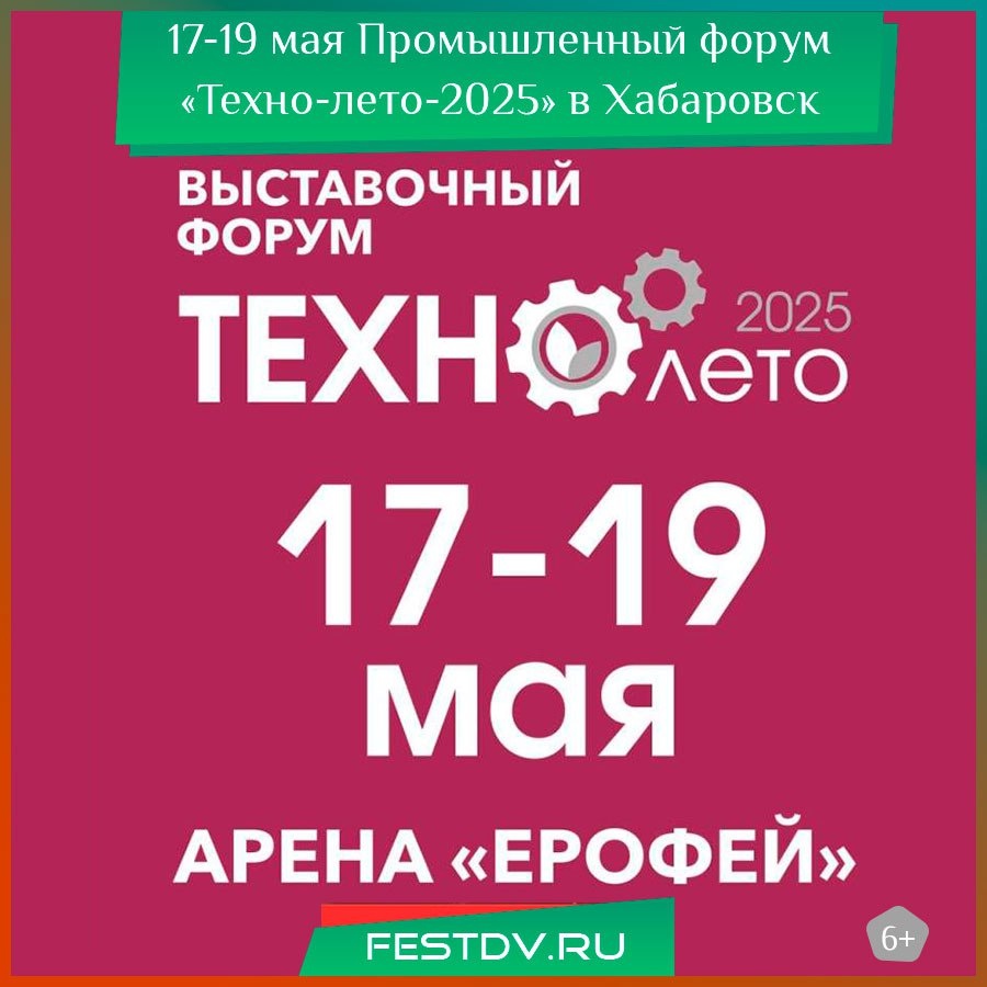 Промышленный форум «Техно-лето-2025» в Хабаровске: новые технологии и деловые связи Дата и время: 17–19 мая, с 10:00 до 19:00 Место проведения: г. Хабаровск, Арена «Ерофей», ул. Морозова Павла Леонтьевича 83 Стоимость: вход свободный Телефон для справок: не указан С 17 по 19 мая Хабаровск вновь станет центром… #фестивалим #хабаровск #вхабаровске #отдыхдв https://festdv.ru/meropriyatiya/kalendar-sobytij/17-19-maya-promyshlennyj-forum-tehno-leto-2025-v-habarovsk/