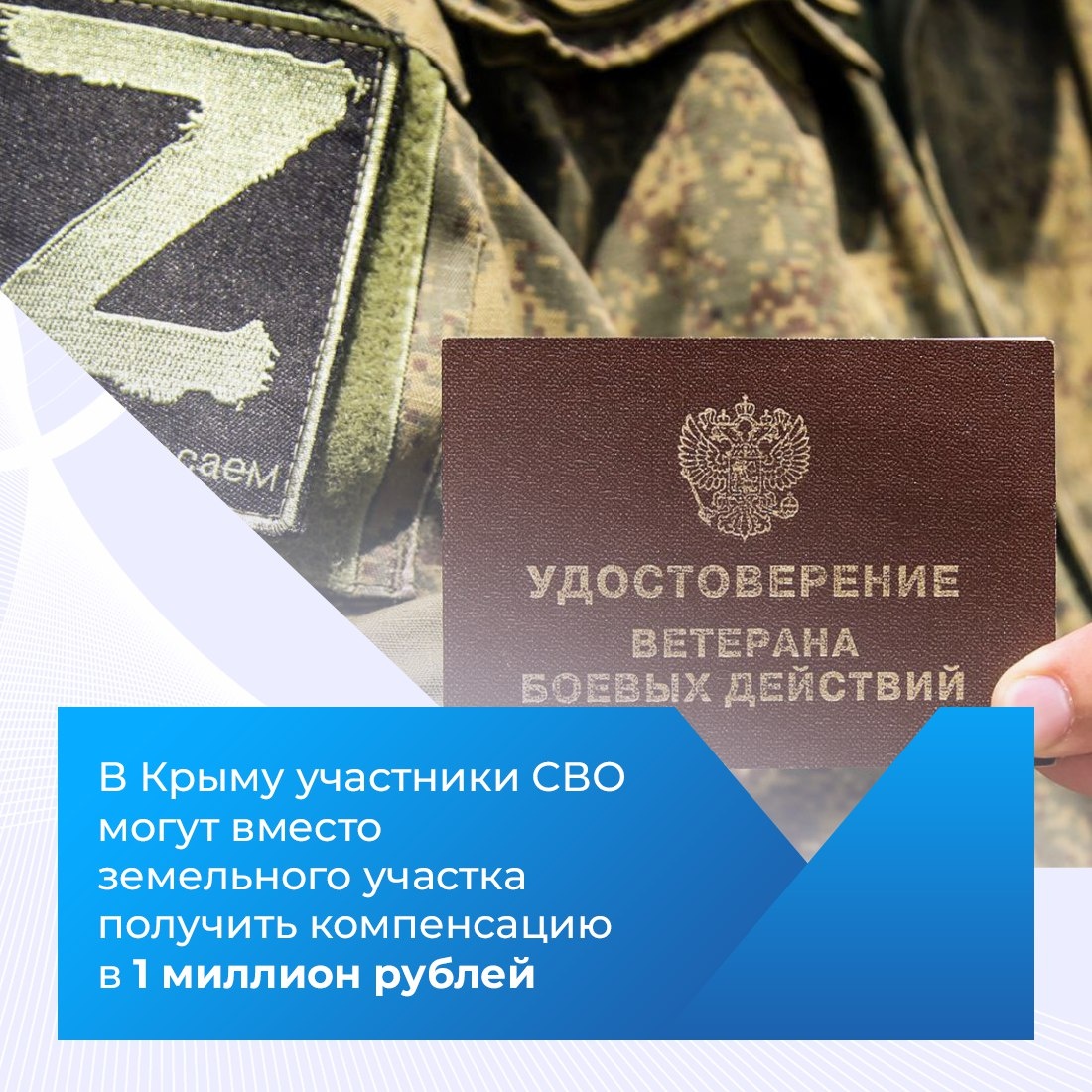 В Крыму около 150 участников специальной военной операции уже получили денежную компенсацию в размере миллиона рублей взамен земельного