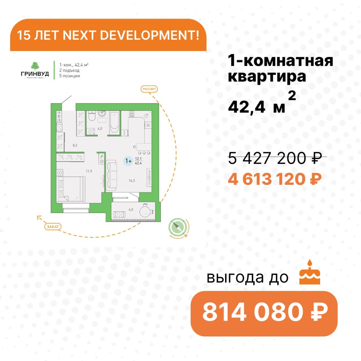 В честь 15-летия компания NEXT Development запустила юбилейную акцию: — Дисконты до 15% на квартиры в NEXT на Площади Партизан и Клубном квартале «Гринвуд» — Специальные условия только до 31 мая Надёжность проверена временем — 15 лет на рынке! Время выгодных решений — сейчас! Ещё больше квартир с выгодной ценой на сайте. Ждём вас в нашем уютном офисе продаж по адресу: ул. Степная, д.12, офис 11 c 9:00 до 18:00 по будням и в субботу с 10:00 до 16:00😍 📞36-22-06 Ваш застройщик NEXT Development🧡