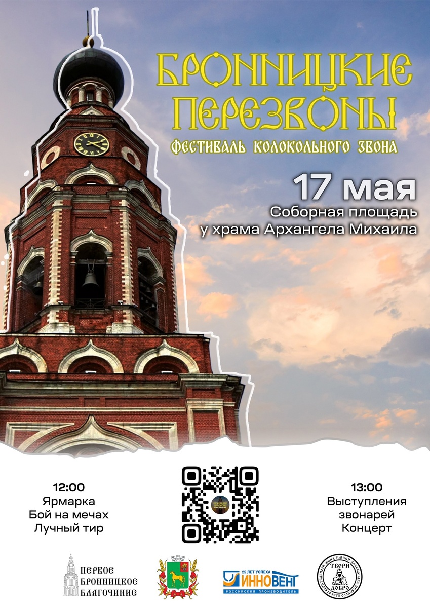 🕊️17 мая 2025 г. На площади у Собора Архангела Михаила состоится фестиваль колокольного звона Фестиваль Бронницкие перезвоны 12:00 Пасхальная ярмарка Мастер-классы Бой на мягких мечах Лучный тир Чаепитие у большого самовара 13:00 Выступления звонарей Концерт с участием уникального Московского Рожечного хора 15:00 Мастер-класс по колокольному звону И многое другое. Приходите всей семьей. Каждый найдет что-то по душе. 🔔Вход свободный. Организатор 1-е Бронницкое благочиние Дополнительную информацию можно получить в нашей группе Фестиваль Бронницкие перезвоны Или по телефону 8-903-727-85-55