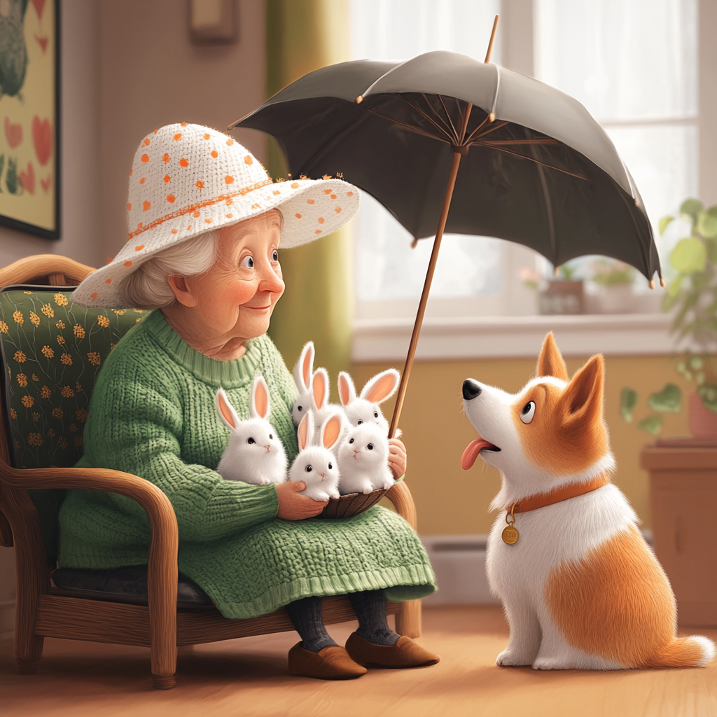 Зайчики сидели в зонте смирно, лишь трепетали их ушки. Они внимательно следили за рыжим корги, сосредоточенно смотревшим по сторонам.