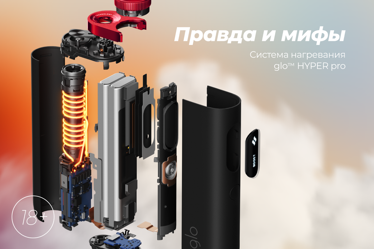 Чем больше вокруг нового продукта разговоров, тем больше домыслов. Системы нагревания табака не стали исключением. Кто-то называет их просто «электронными сигаретами 2.0», кто-то уверяет, что все наоборот. Где правда, а где фантазии? Разбираемся на примере устройств glo и освежаем картину фактами. Нет. glo – это не вейп. Принципиальное отличие – в устройстве и наполнении. glo нагревает именно табак, а не жидкость, без сгорания, до температуры около 270°C***. Это не испарение, а нагрев*. Вейп же испаряет жидкость с никотином и ароматизаторами. Разные технологии – разные ощущения и разные продукты. Хотелось бы, но это не так. glo – это не безвредное устройство. Стики, необходимые для его использования, содержат никотин, который вызывает привыкание и наносит вред здоровью. Однако, в сравнении с обычными сигаретами, при использовании glo образуется на 90-95% меньше токсичных веществ****. Важно: меньше – не значит «нет совсем». Всё, как с телефонами: с виду похожи, внутри – разные. У glo ес