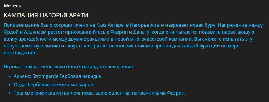 Новые награды за кампанию «Нагорье Арати» в патче 11.1.7