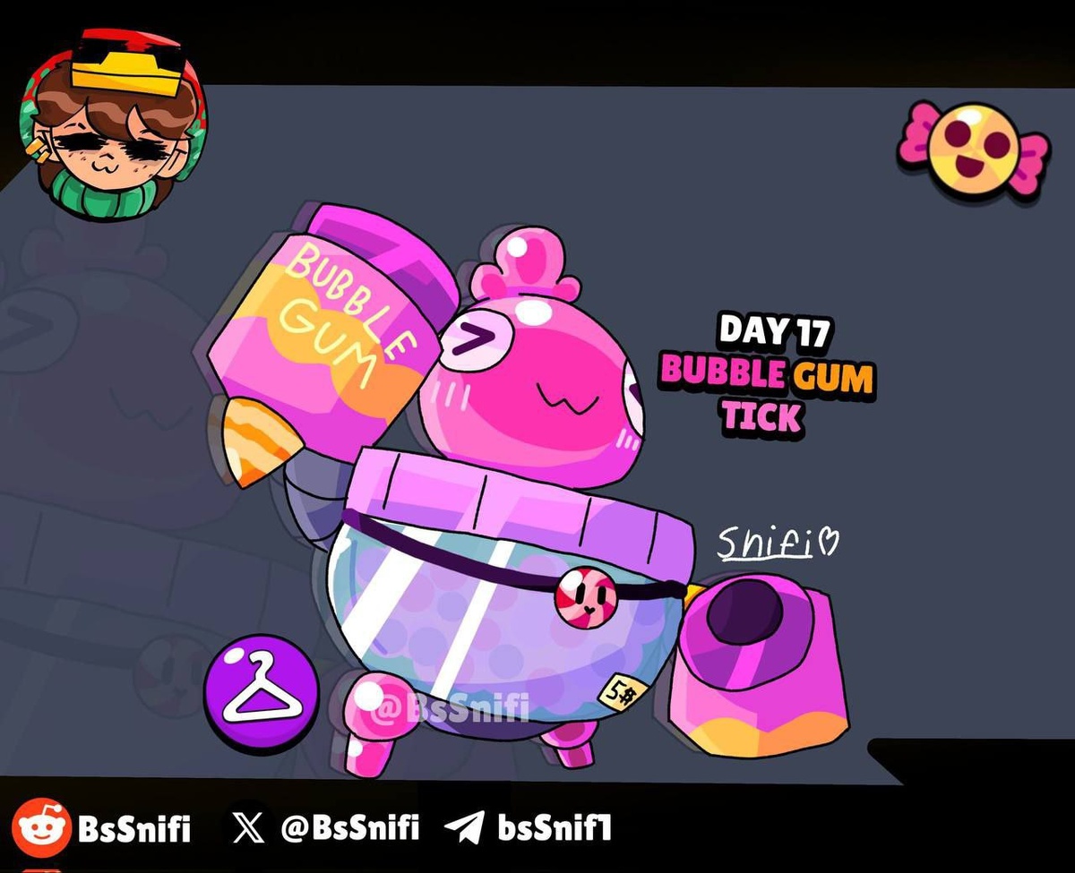 ✏️ Концепт скина — «Бабл Гам Тик» Довольно-таки прикольный скин эпической редкости. Хотели бы вы увидеть данный скин в игре? 🤔 Мир Supercell. Подписаться