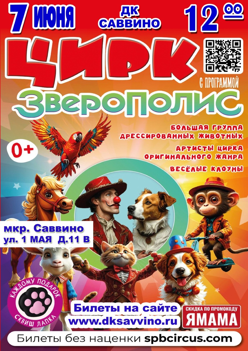 🎉7 июня в 12.00 Цирк представляет новую программу - Зверополис. Яркое шоу с участием большой группы дрессированных и экзотических животных Перед Вами выступят артисты оригинальных жанров. Вы увидите светодиодное шоу . Всё представление с Вами веселые клоуны. ❗Билеты тут=> https://clck.ru/3M5DDu 📍Место: Дом культуры "Саввино" #творчествобалашиха, #Подмосковье, #культураподмосковья, #культурабалашихи, #железнодорожный, #дксаввино, #вПодмосковье,#НашеПодмосковье #вБалашихе, #Балашиха