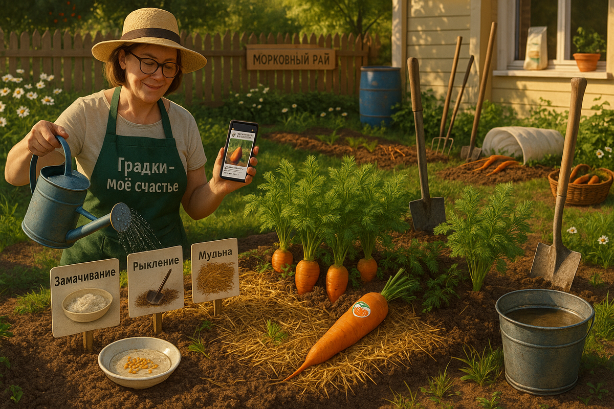 Привет, сосед по грядке! Если твоя морковка когда-нибудь выходила из земли кривой, как старый гвоздь, или сухой, как прошлогодний сухарь, то эта статья для тебя. Я сам раньше вытаскивал с грядки такие «шалашики» – тонкие, косые, будто их ветром гнуло. Но годы проб и ошибок научили меня, как вырастить морковь, которая будто выточена: ровная, сочная, сладкая. Делюсь проверенным рецептом – от замачивания семян до мульчирования. Всё просто, без химии, с душой. Погнали!