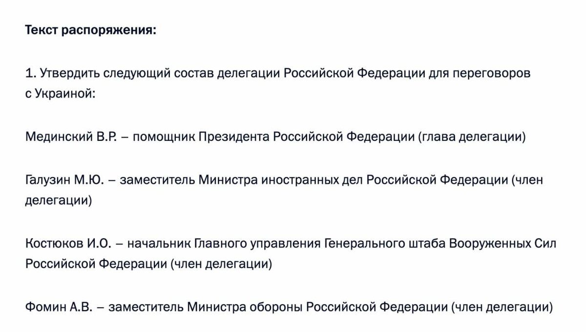 ⚠️ Владимир Путин утвердил состав делегации России для переговоров с Украиной