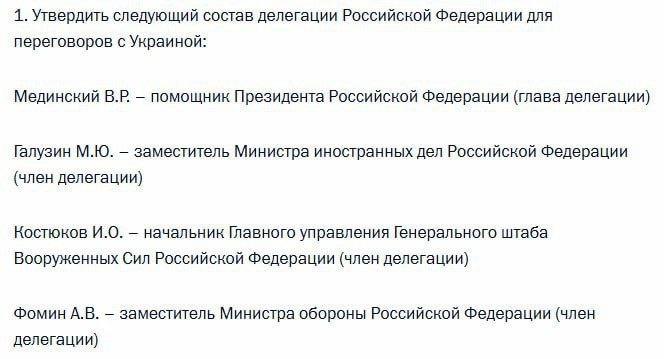 ⚡️Путин утвердил состав делегации на переговоры с Украиной.